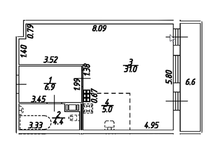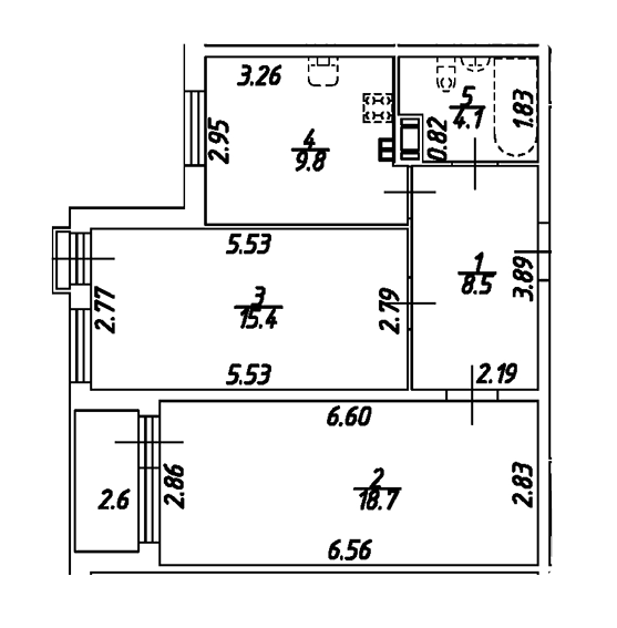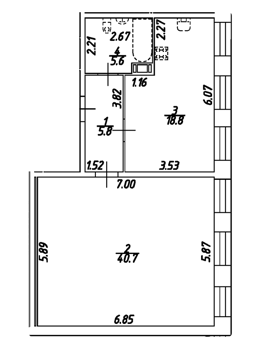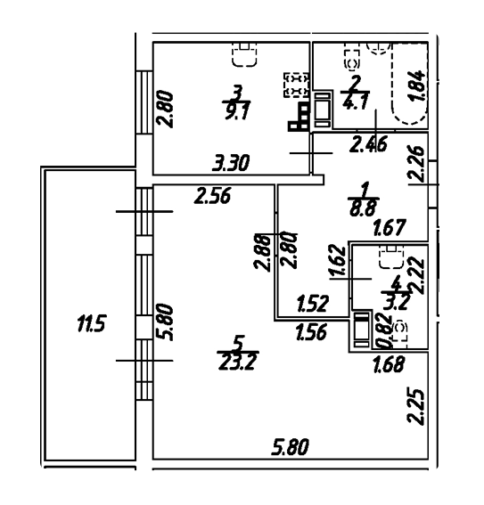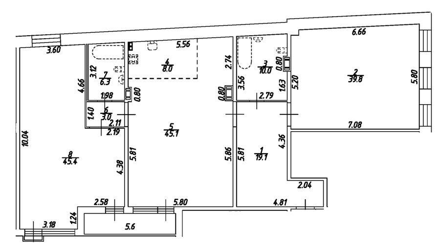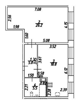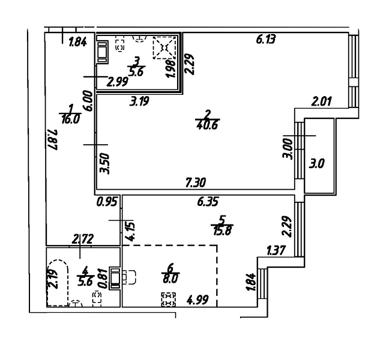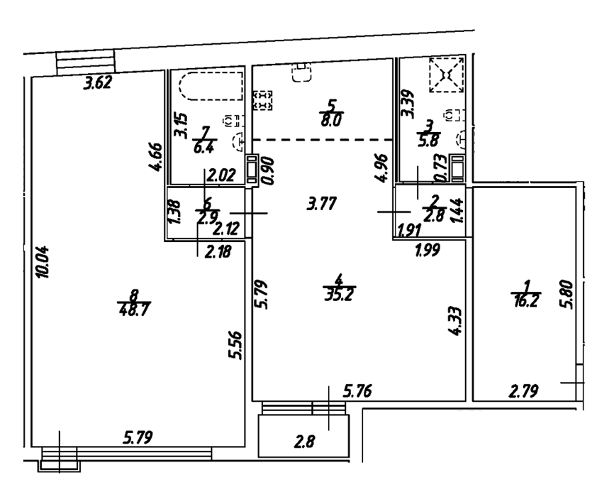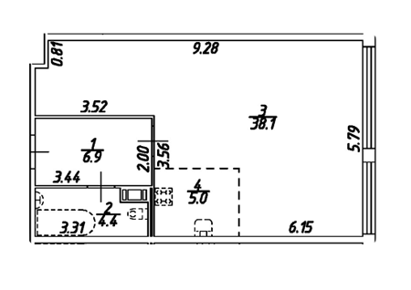 Площадь от 43.8 м2