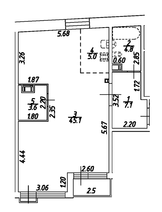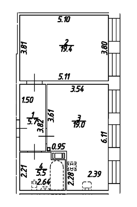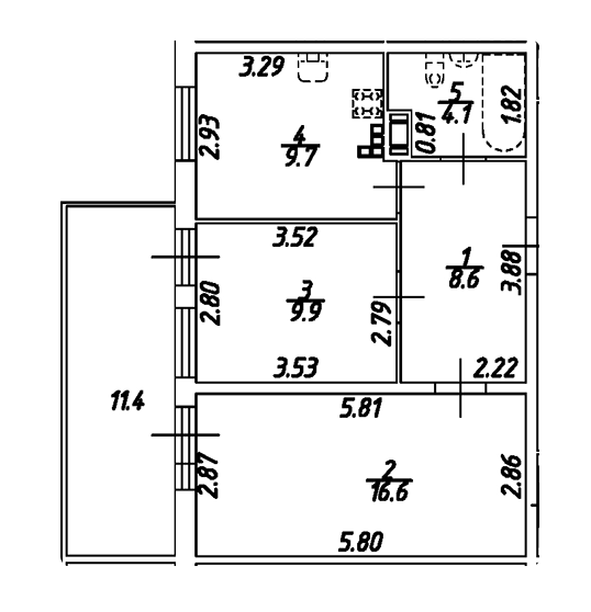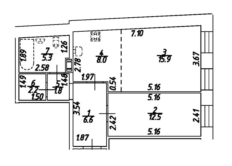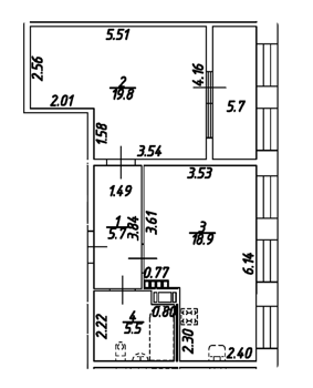Площадь от 51.6 м2