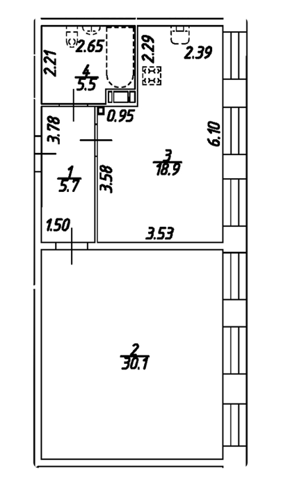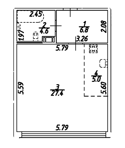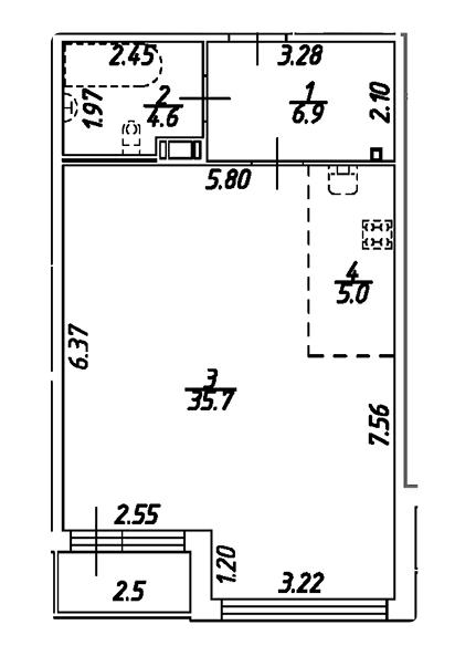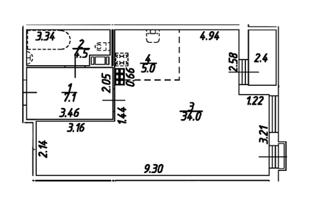 Площадь от 49.7 м2