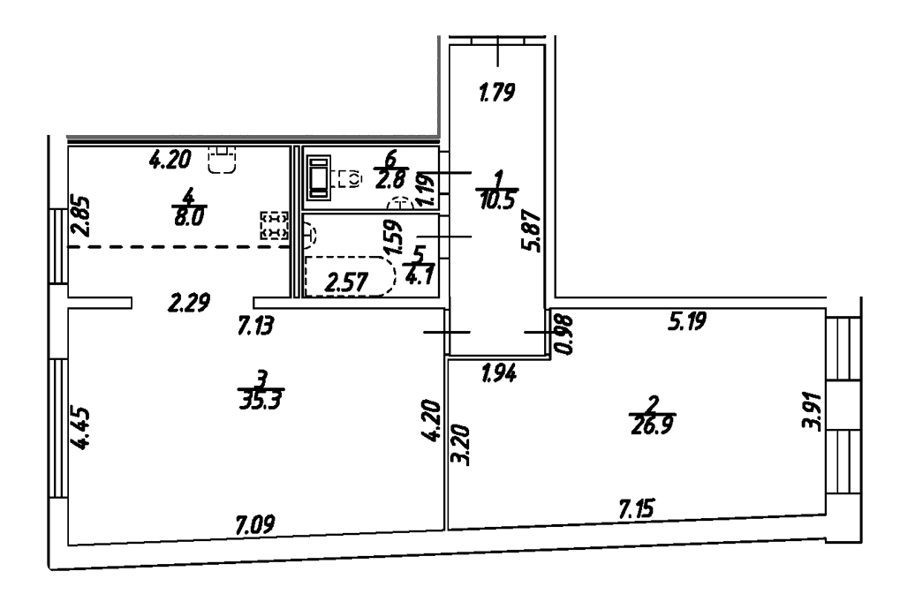 Площадь от 49.2 м2