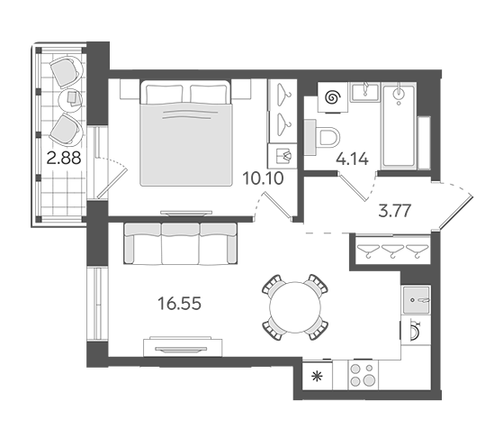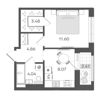 Площадь от 34.1 м2