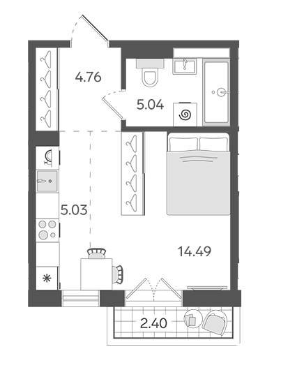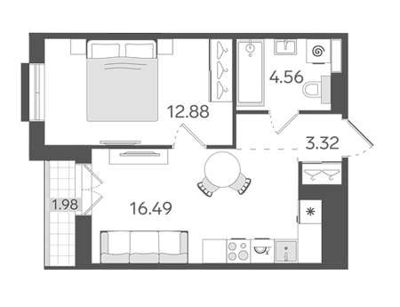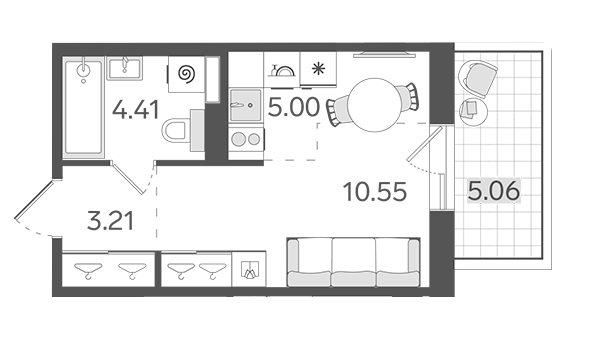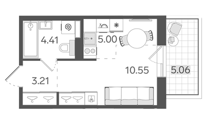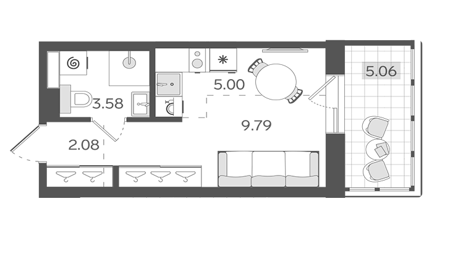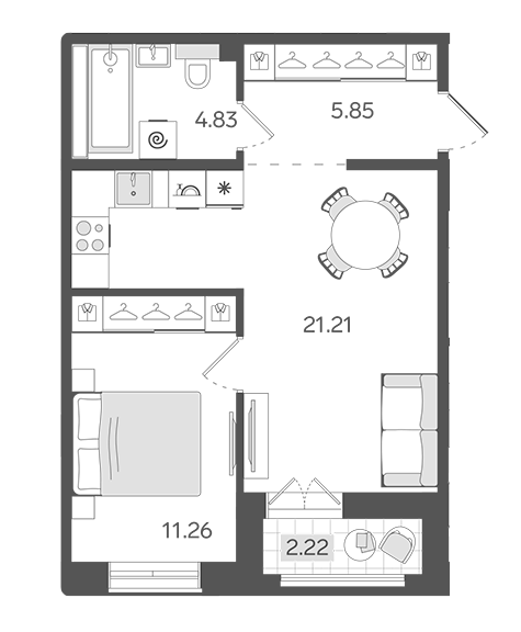 Площадь от 21.8 м2