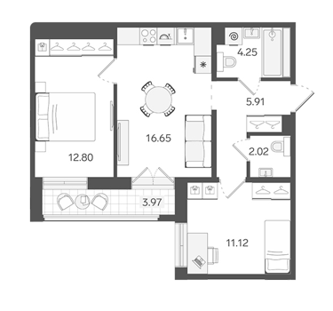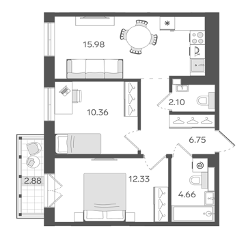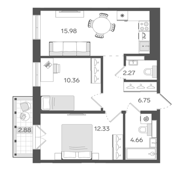 Площадь от 33.3 м2