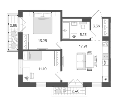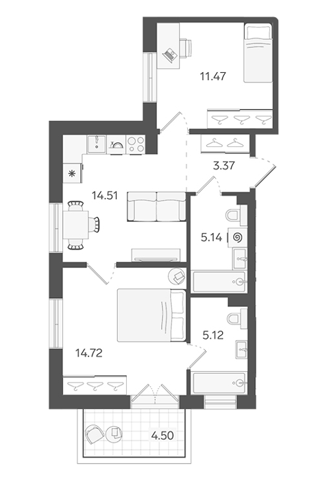 Площадь от 50.9 м2