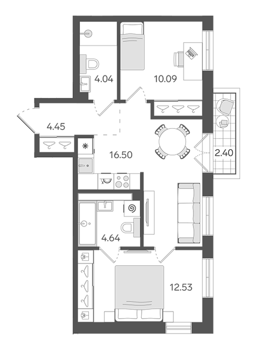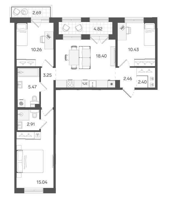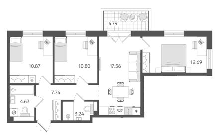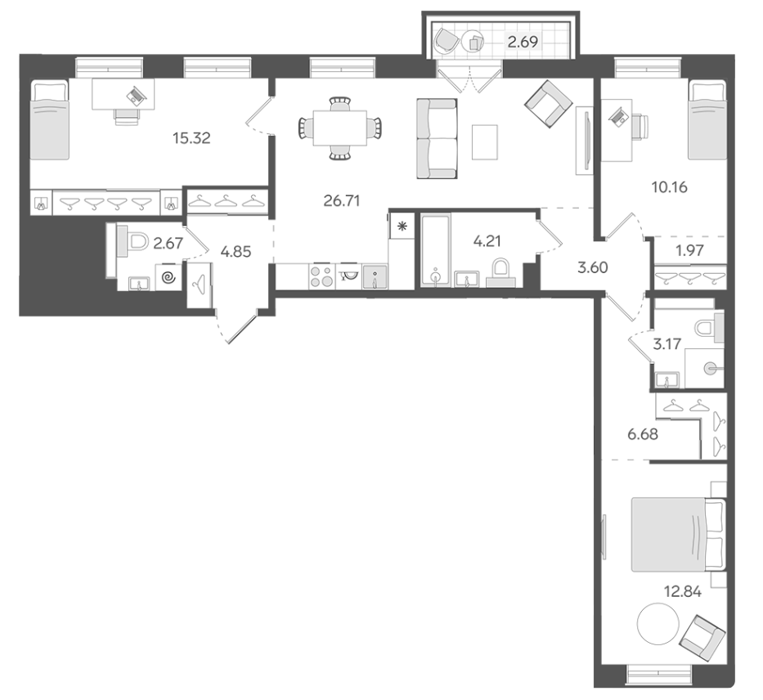 Площадь от 68.7 м2