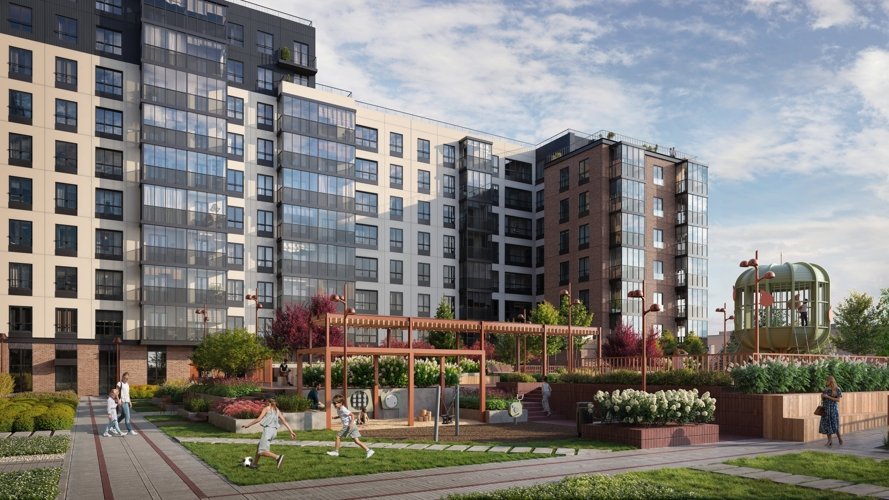 Высота 8–11 этажей сохраняет камерность и комфорт восприятия пространства. Нет ощущения «человейника», а двор и дом остаются соразмерными человеку.